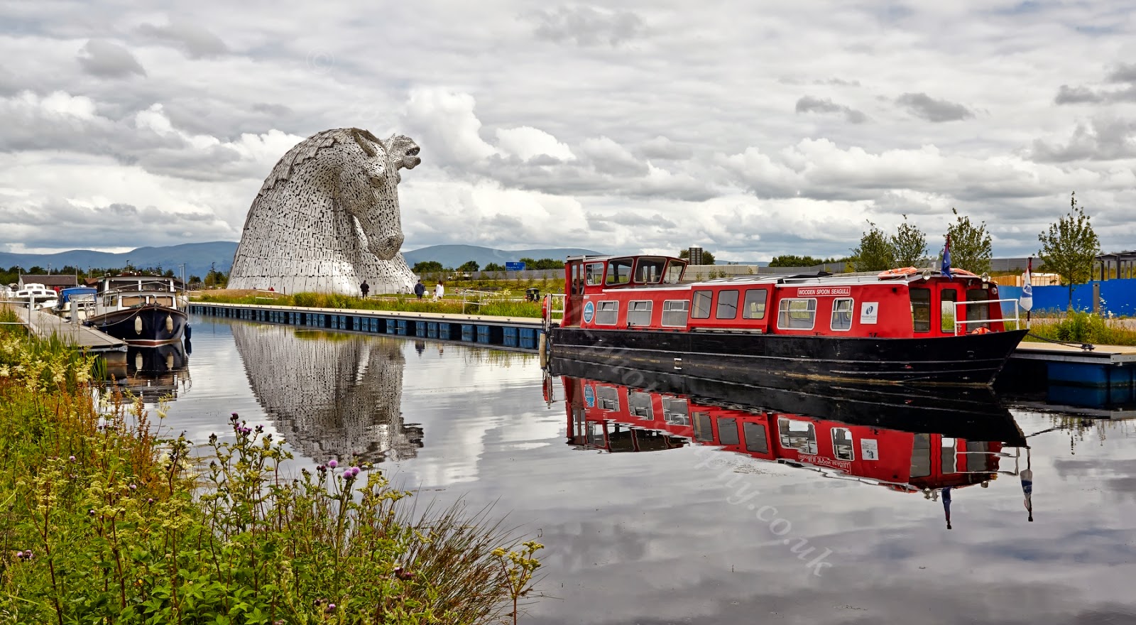 Canal Boat and Kelpies
